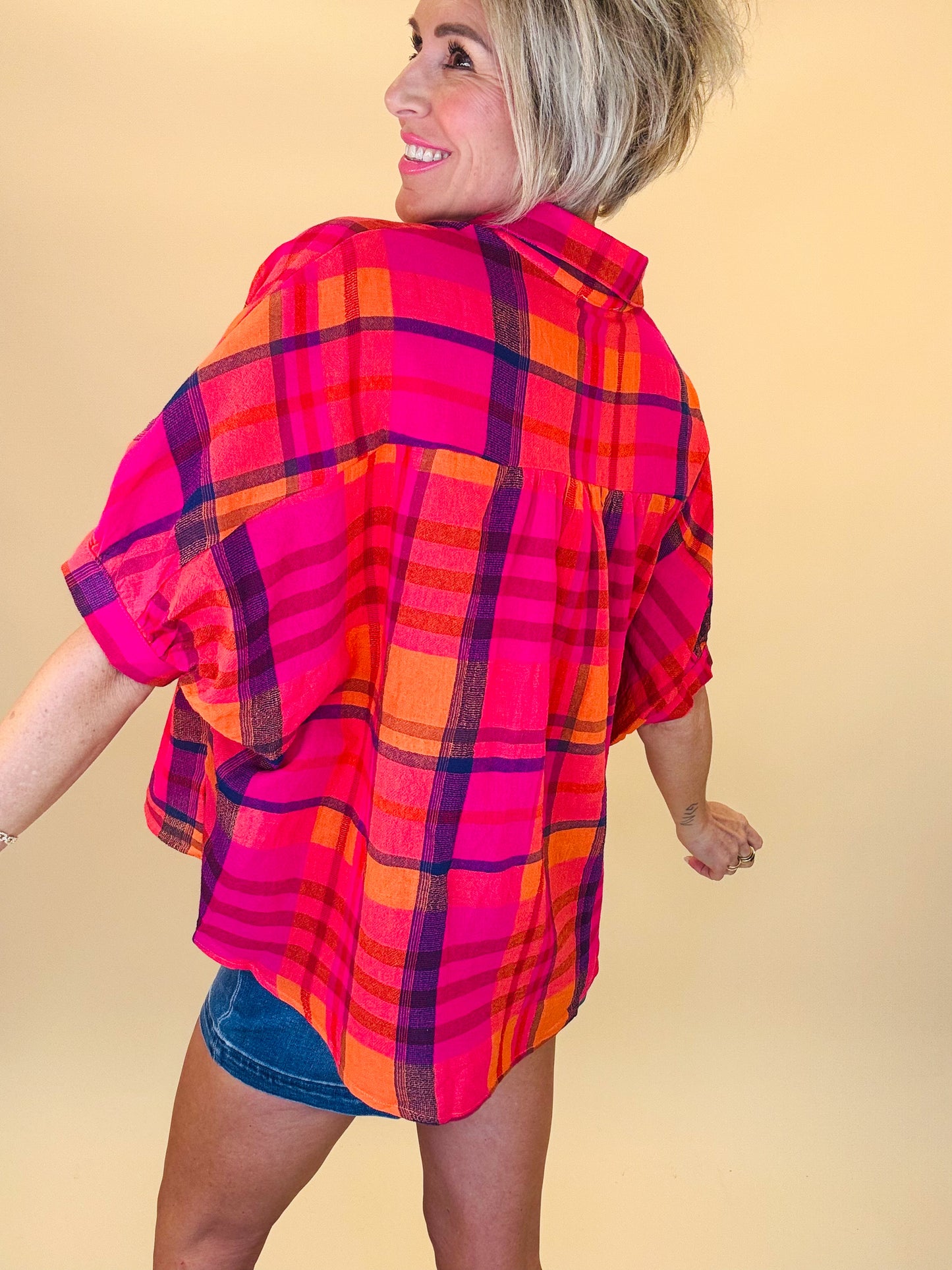 Sunset pop plaid top