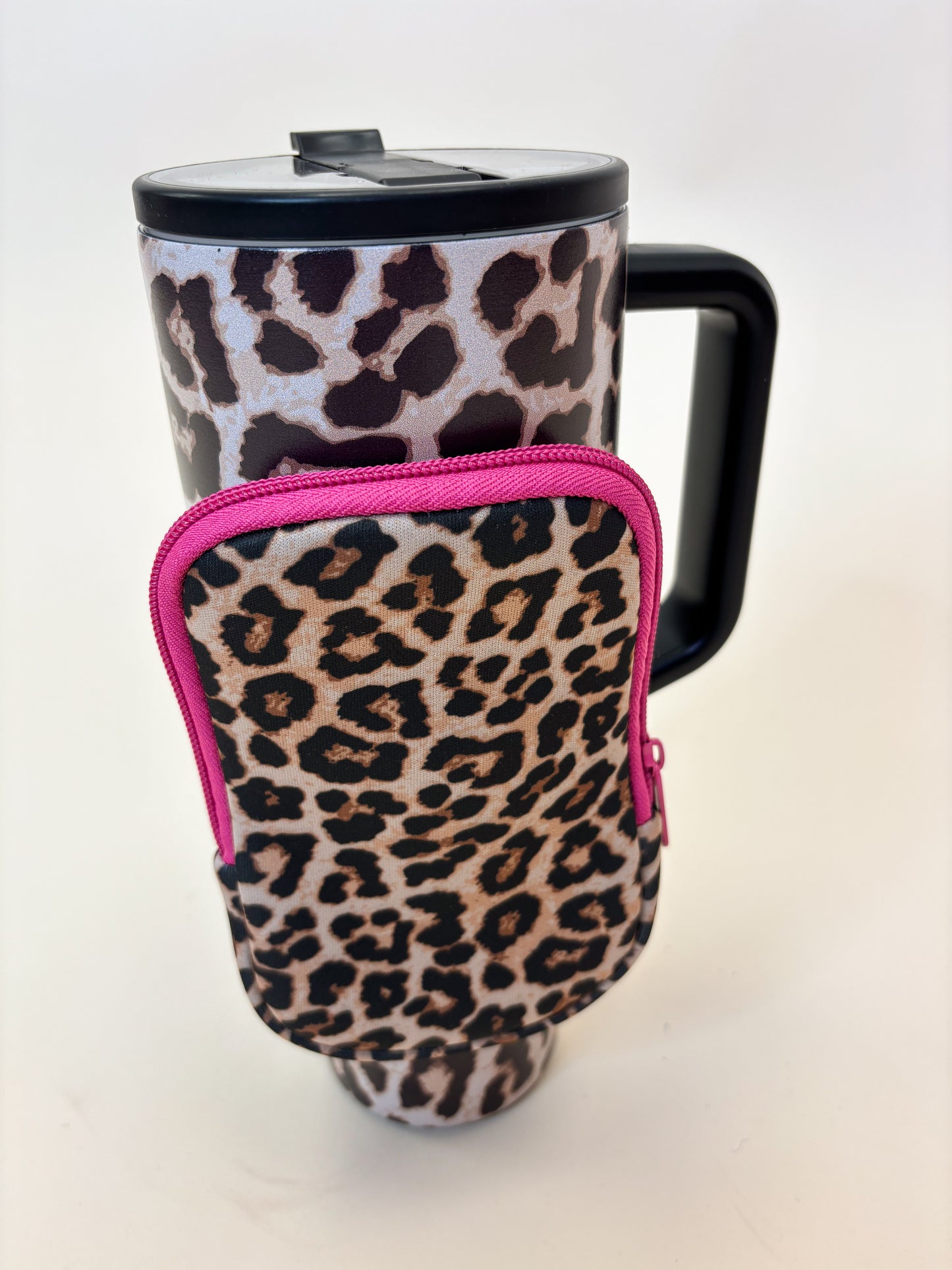 Stay wild and hands-free with this Tumbler & Pouch—your go-everywhere sidekick for drinks, errands, and busy-girl days. Featuring bold leopard & hot pink detail this mini zip pouch attaches securely to your cup handle to hold all the little things you always lose in the bottom of your bag—lip gloss, keys, hair ties, cards, or even your favorite snack.