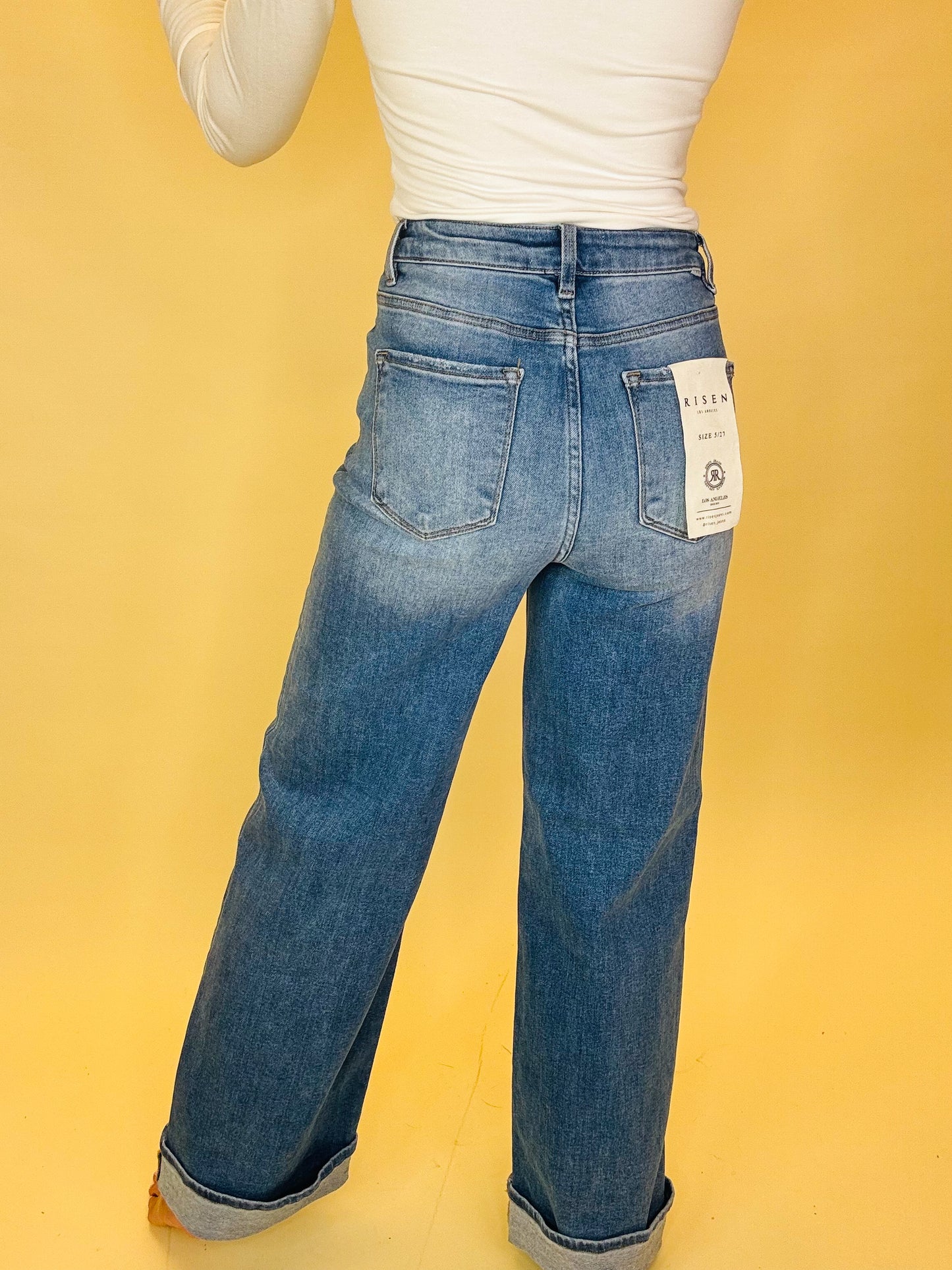 These high-rise, wide-leg jeans are the perfect mix of classic and modern. Featuring a soft faded wash and rolled hem, they bring effortless style to any look—whether you’re pairing them with cozy knits, chic blouses, or casual tees. Comfortable, versatile, and on-trend, they’ll be your new go-to denim for every season.