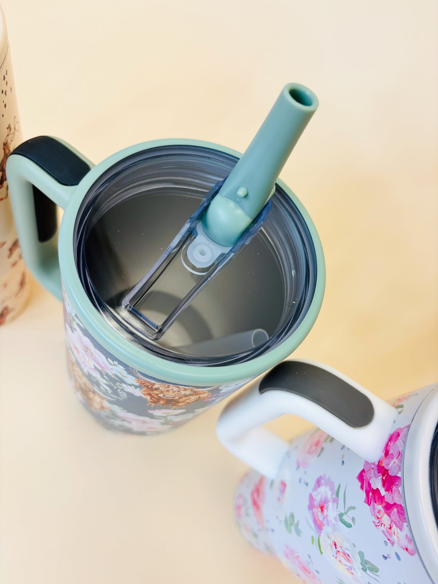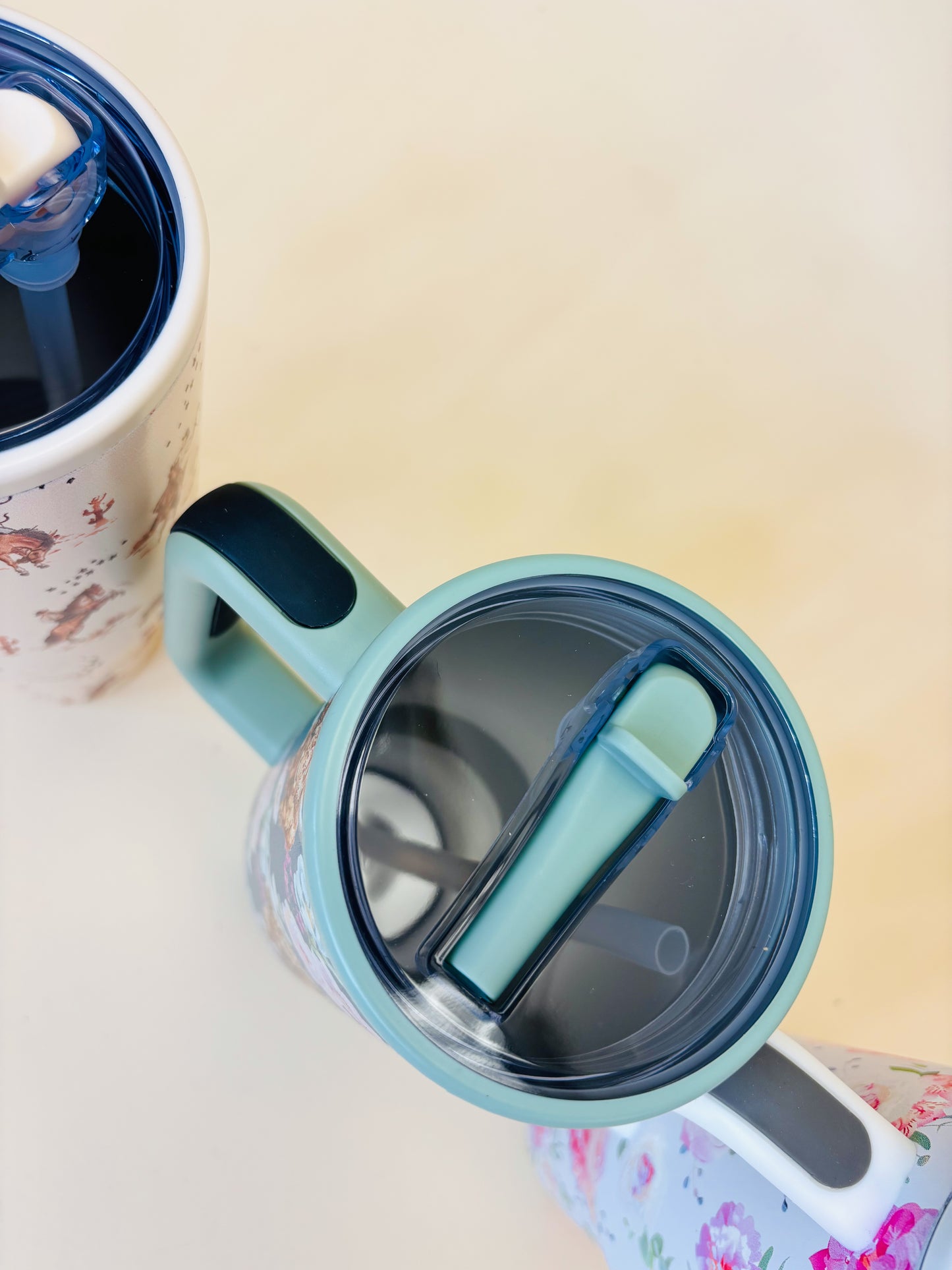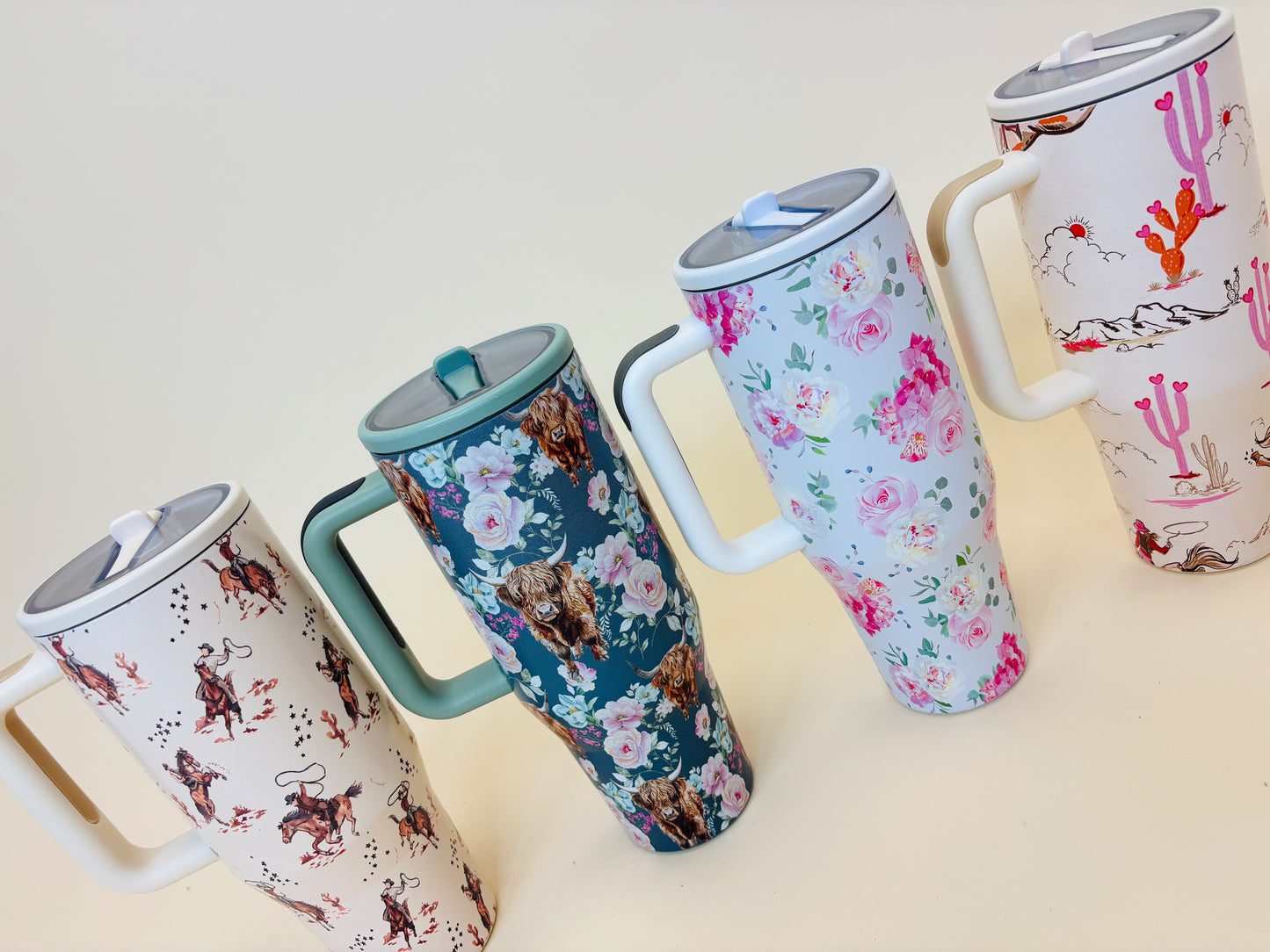 Our Stainless Steel Tumblers provide a unique and stylish look for your daily hydration needs. Our tough printed exterior is double insulated to keep your beverage at the desired temperature, for hours. Perfect for hot or cold beverages, these tumblers are the perfect accessory for any occasion. Has a flip straw top that when closed prevents spilling- so it's easy to carry!