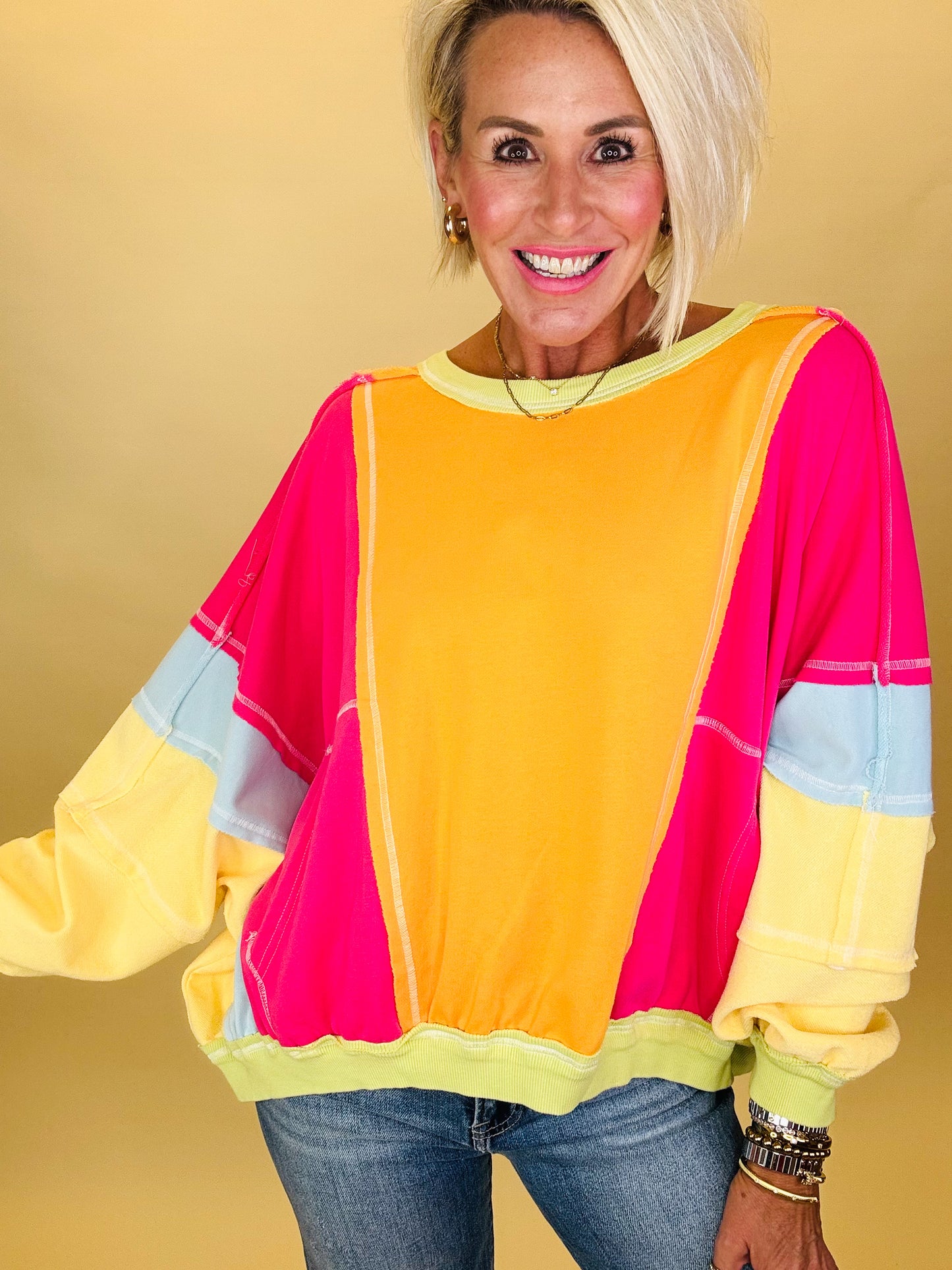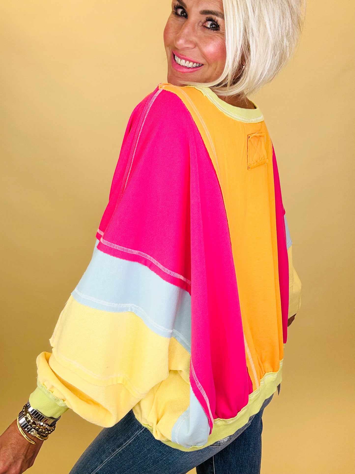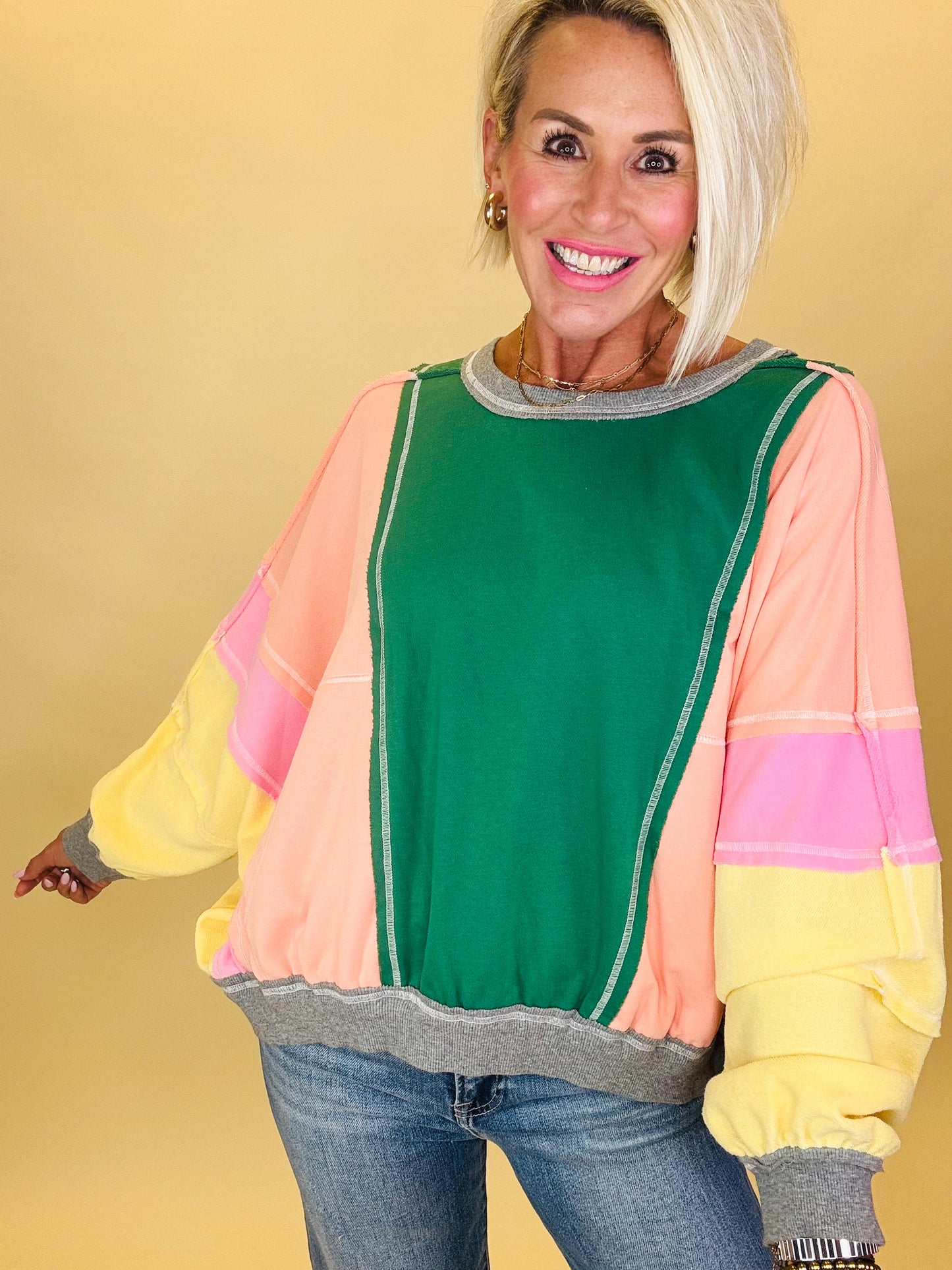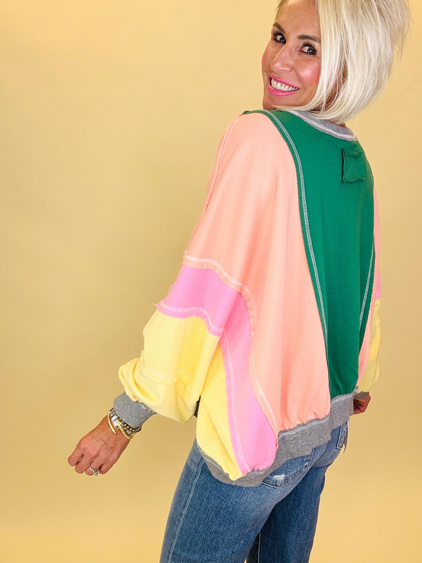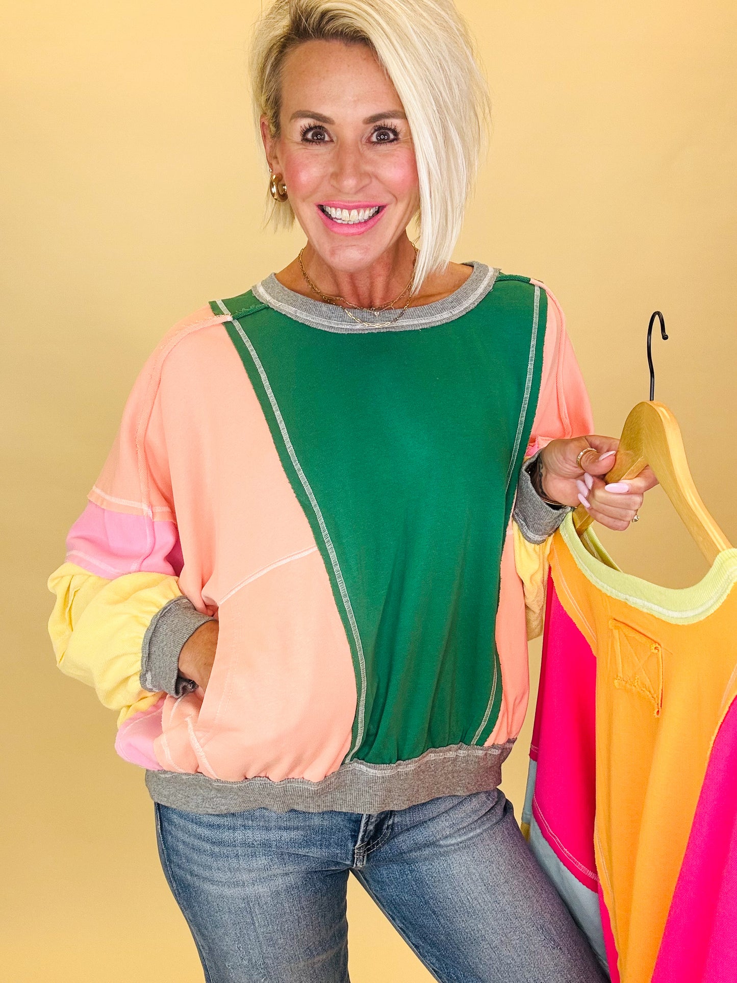 The Falling Leaves pullover captures the magic of autumn with its bold colorblock design, front pocket detail & in two great colors! Cozy and playful, it’s the perfect piece for crisp fall days, pumpkin patch strolls, and everything in between.