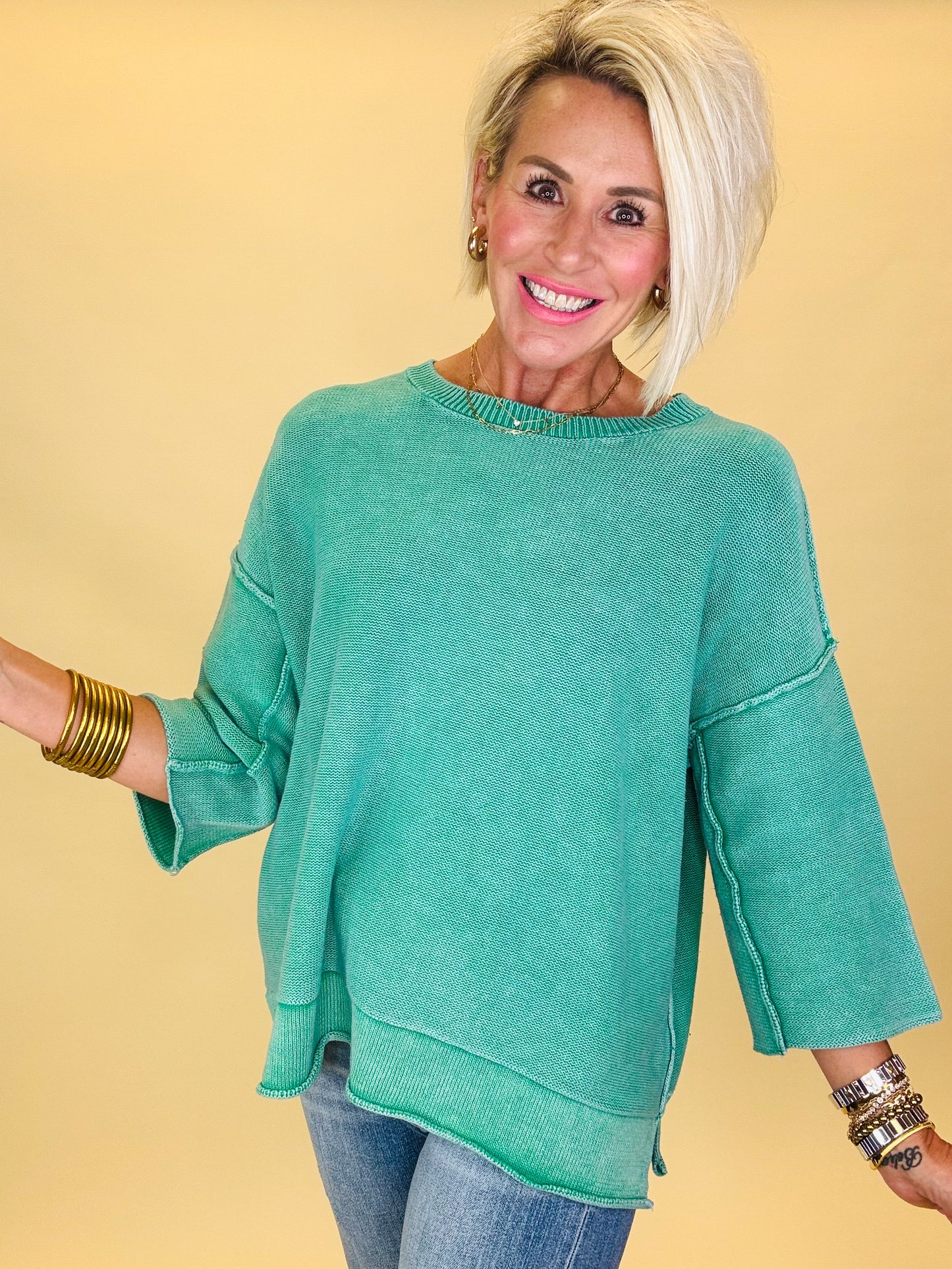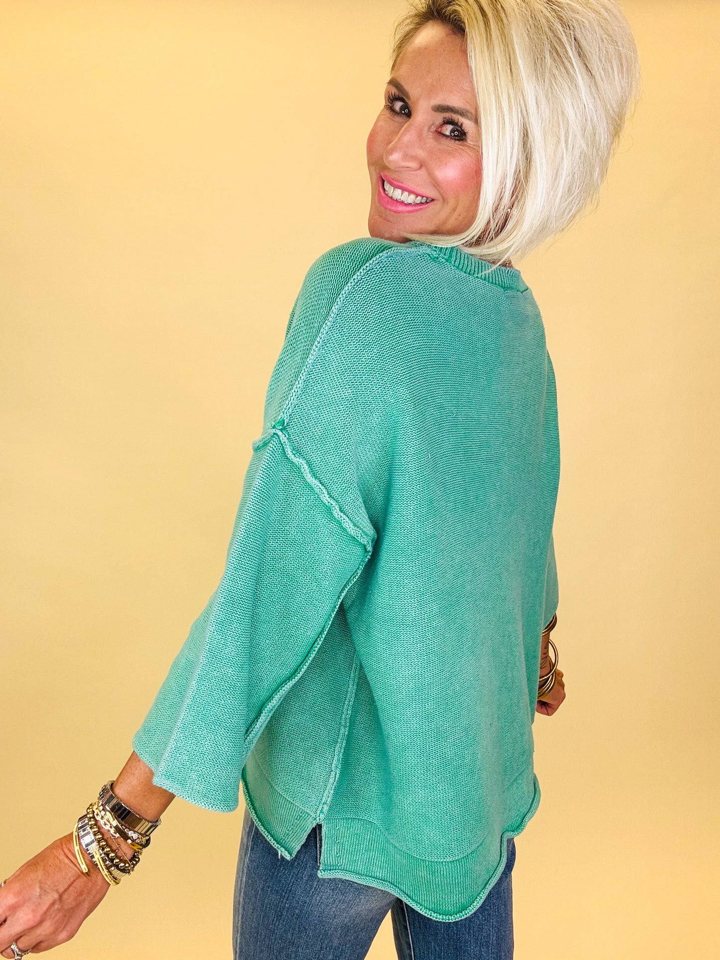 This cozy knit sweater features a relaxed fit with a classic crew neckline and subtle side slits for easy movement. Its rich colors adds a fresh pop of color to your fall wardrobe, making it the perfect piece for layering with jeans, leggings, or boots. Soft, versatile, and effortlessly chic—your new go-to for crisp autumn days.