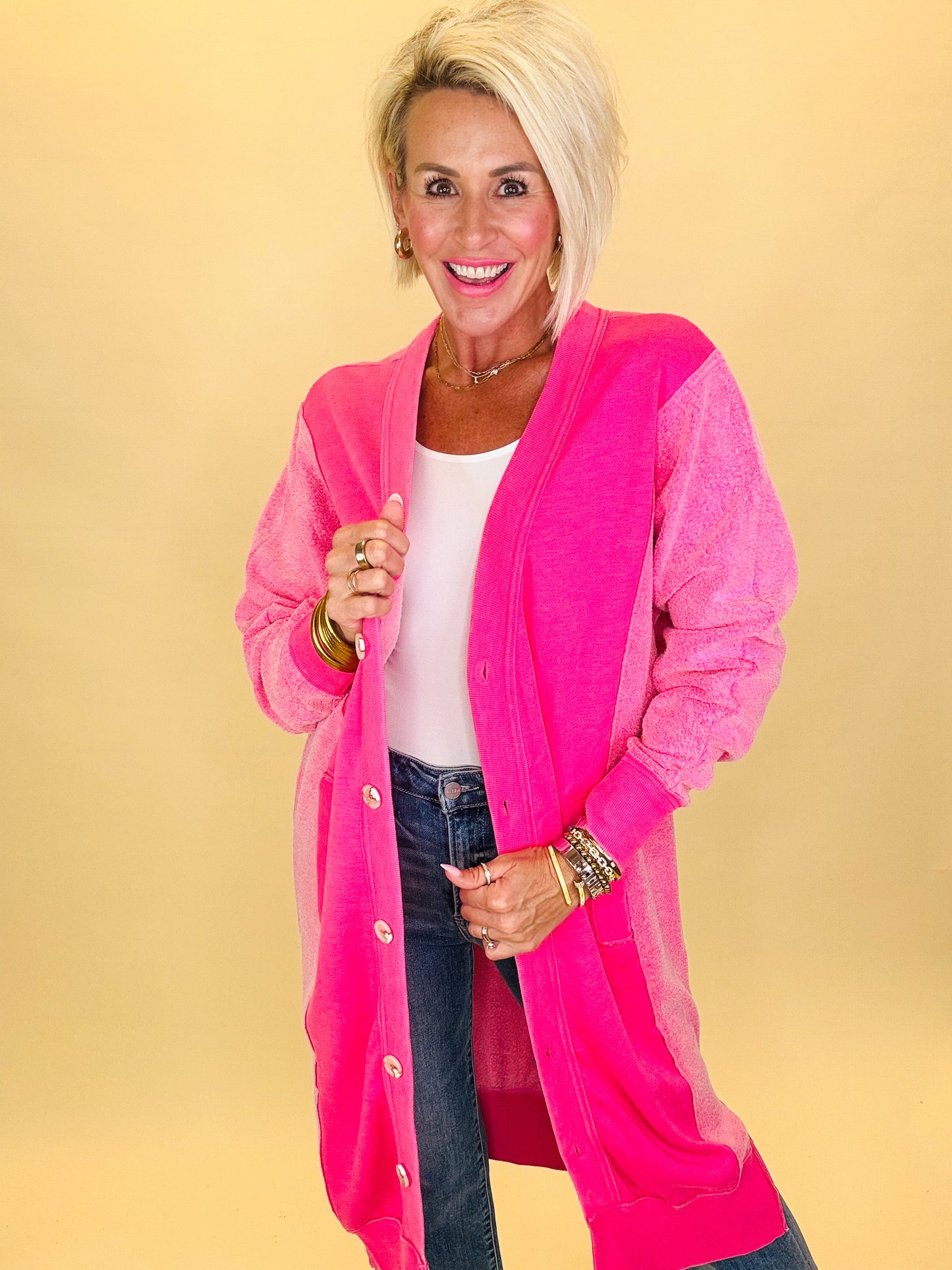 The ultimate layering piece for every season— Desi Cardigan is soft, slouchy, and effortlessly stylish. Designed with button-down detailing, roomy pockets, and a relaxed fit, it’s the perfect throw-on for lounging at home, running errands, or adding a pop of color to your everyday look. Available in multiple vibrant shades and neutrals, this cardigan is as versatile as it is comfortable—your go-to for staying cozy while looking chic.