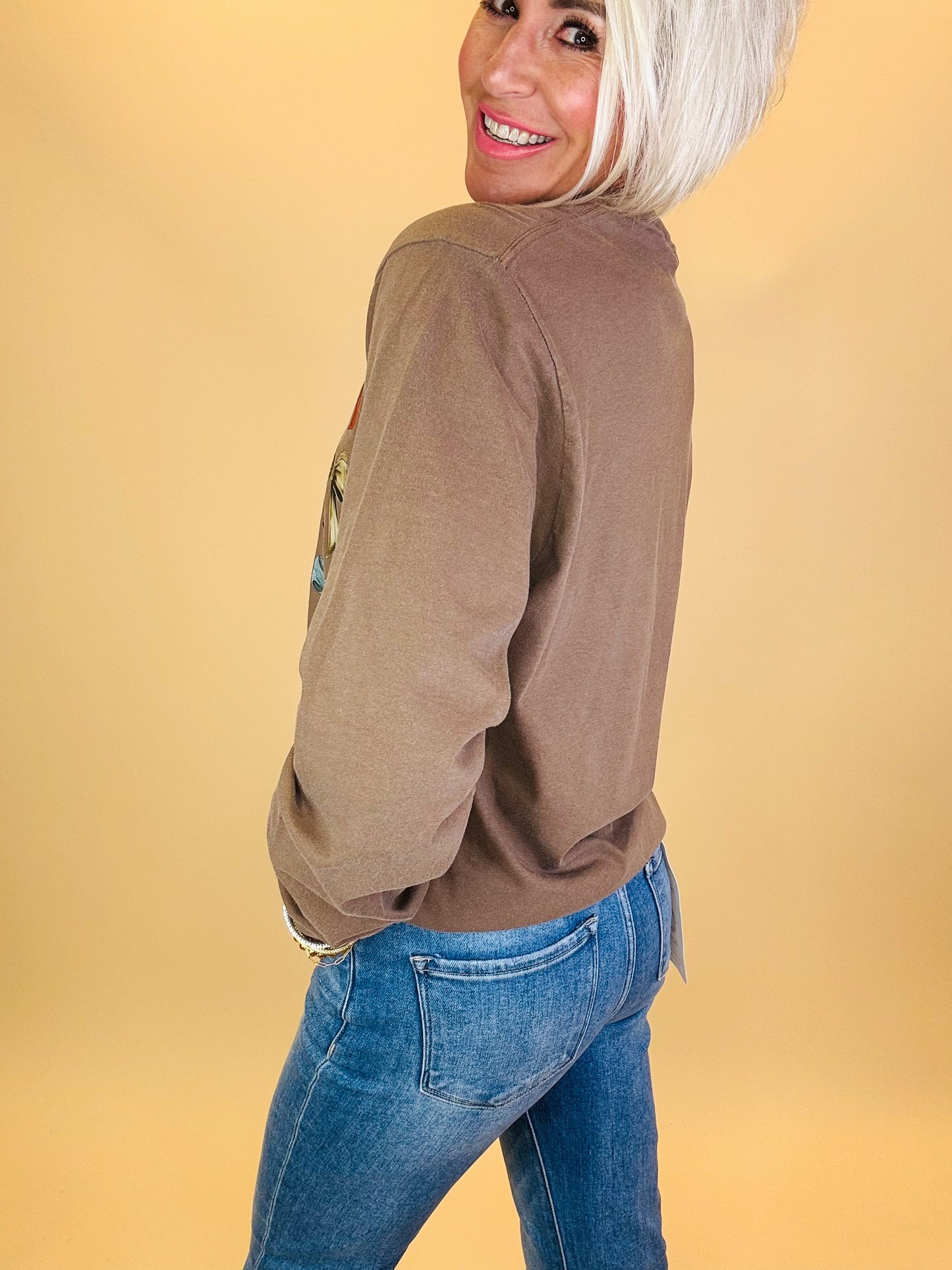Sweet, feminine, and full of charm—this graphic Longsleeve tee showcases a collection of colorful bows in warm autumn tones and soft neutrals. Printed on a comfy Comfort Colors tee, it offers that vintage-inspired, lived-in feel you’ll love to wear on repeat. Perfect for pairing with jeans and sneakers or layering under a cardigan, this bow tee brings a playful yet classic touch to your everyday fall style.