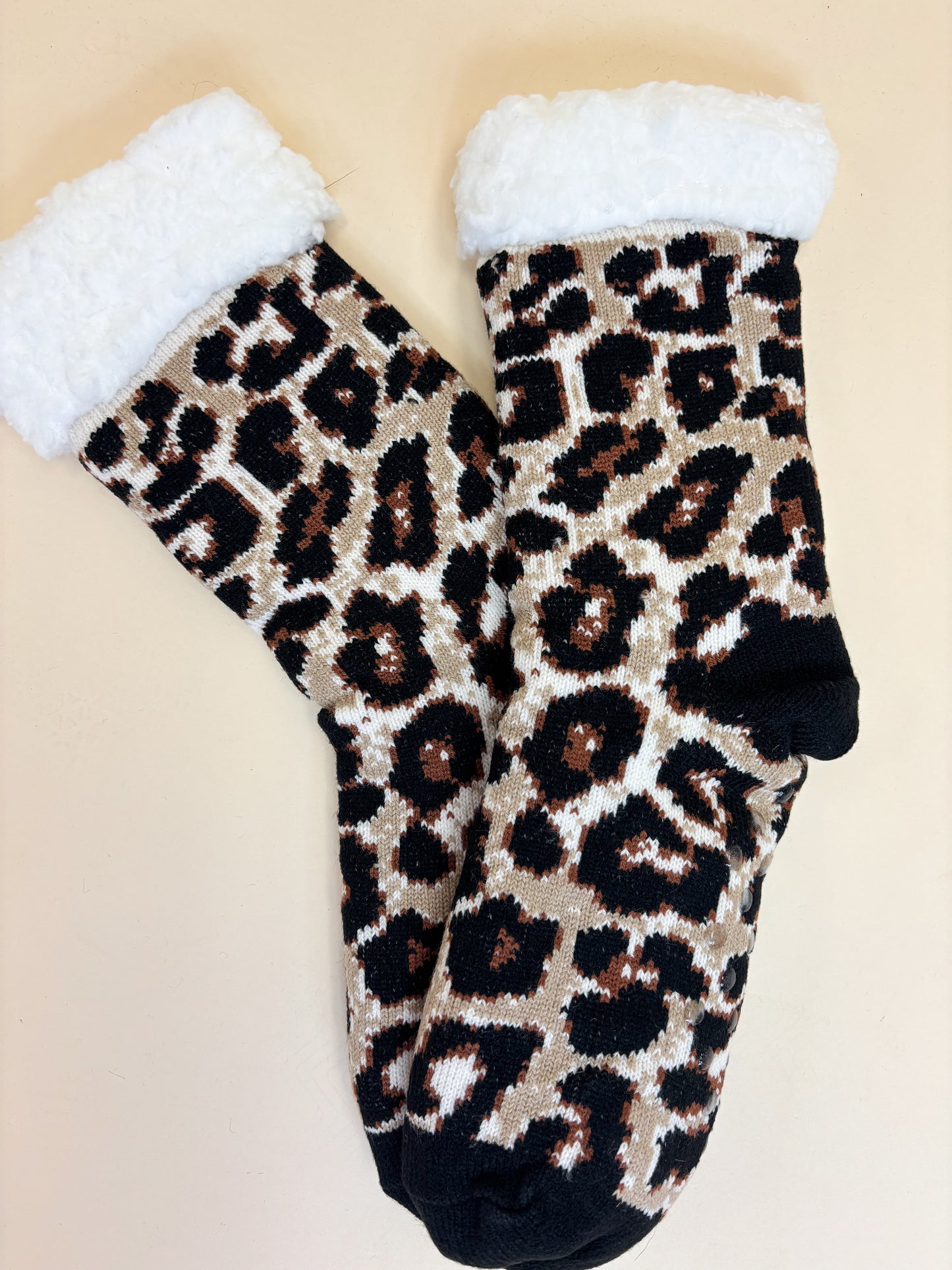 Step into comfort with the Cozy Cabin Socks in playful fun prints. Featuring a fuzzy lining that feels like a warm hug and a grippy bottom for sure footing, these socks are perfect for cozy days indoors. Add a fun pop of pattern to your lounging routine while keeping your feet snug and steady.