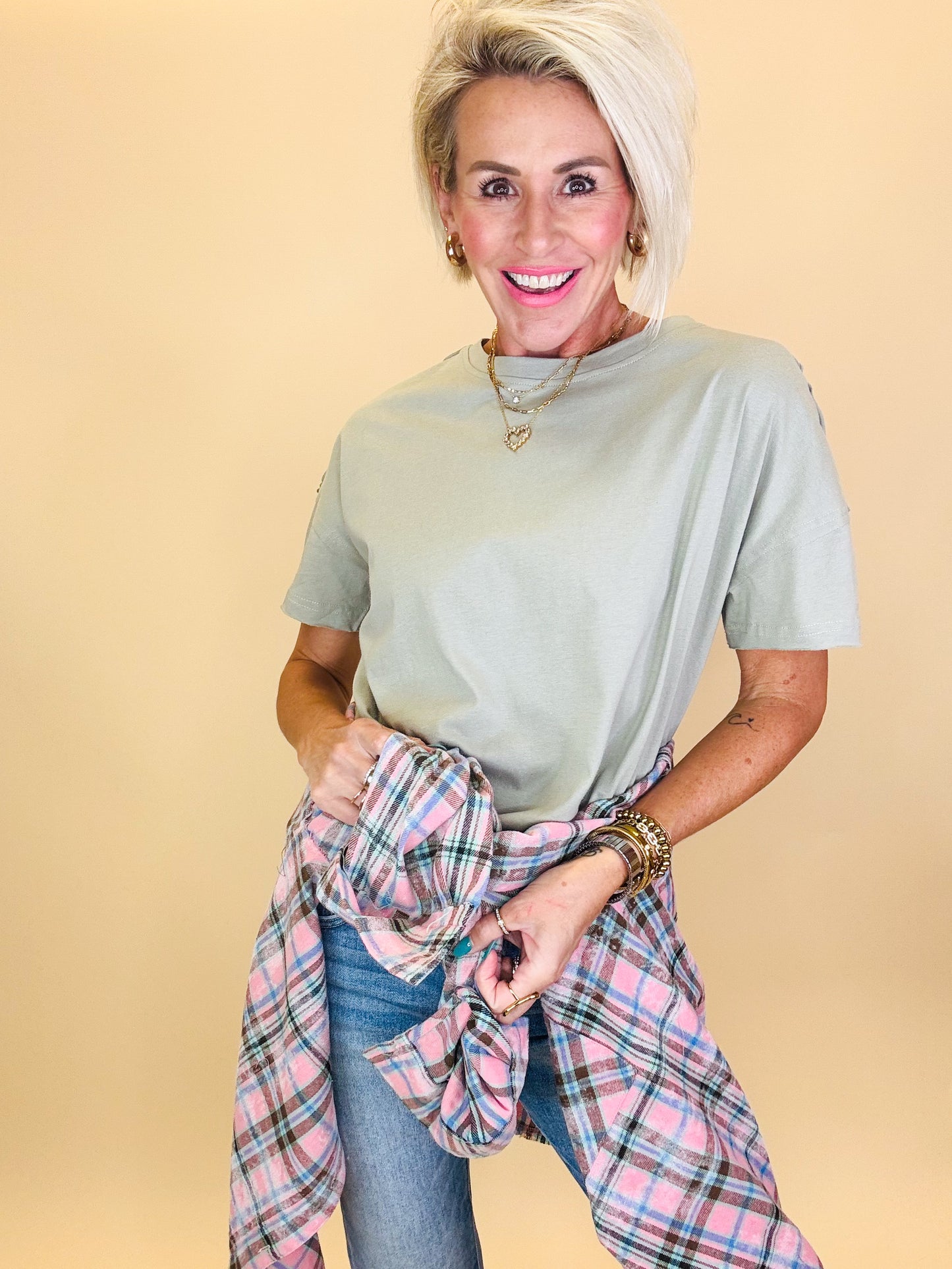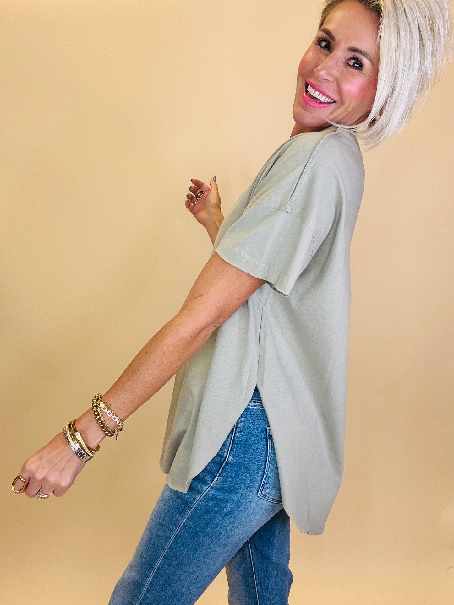 Say hello to your new favorite oh so soft & oversized tee. Designed in a relaxed silhouette with a rounded neckline and drop shoulders, this top brings effortless comfort and trend-forward flair. Perfect to dress up or down — for pairing with distressed denim, biker shorts, or layering under a cozy cardigan. Whether you’re lounging, running errands, or styling it for a casual night out, this tee adds the perfect pop of playful chic to any look.