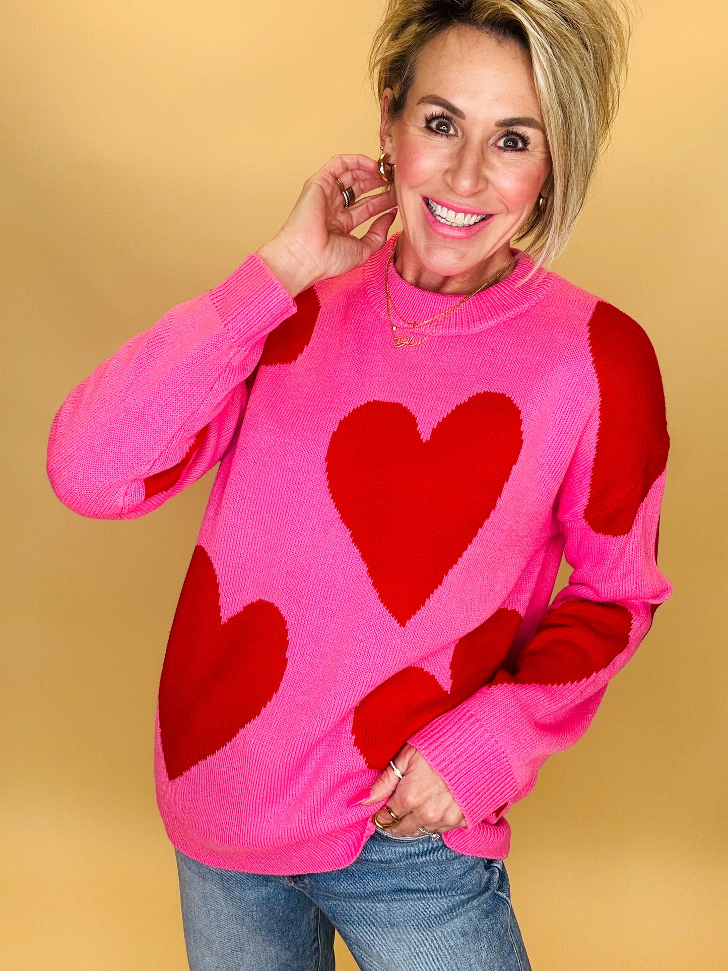 Bring on the heart eyes. The Love You Big Heart Sweater features a vibrant pink knit base with bold red heart accents for the ultimate feel-good spring statement. Designed with a relaxed fit, classic crew neckline, and soft lightweight knit, this sweater is perfect for transitioning seasons—easy enough for daytime wear yet playful enough to turn heads. Pair it with denim, white jeans, or a skirt for a look that’s cozy, confident, and full of love
