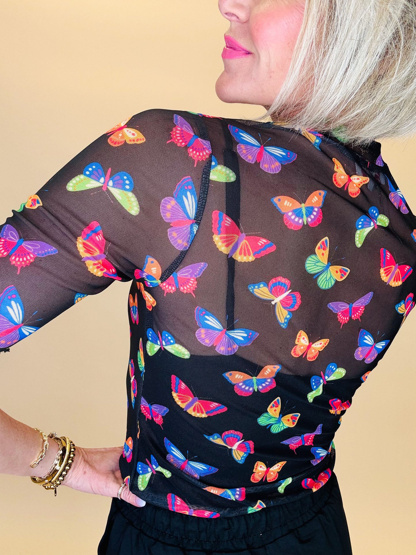 Kora Sleeve Mesh Top Butterfly