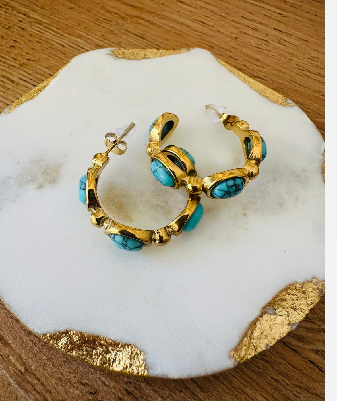 All available inventory for Turquoise stone 18k plated earrings has been added to the cart.