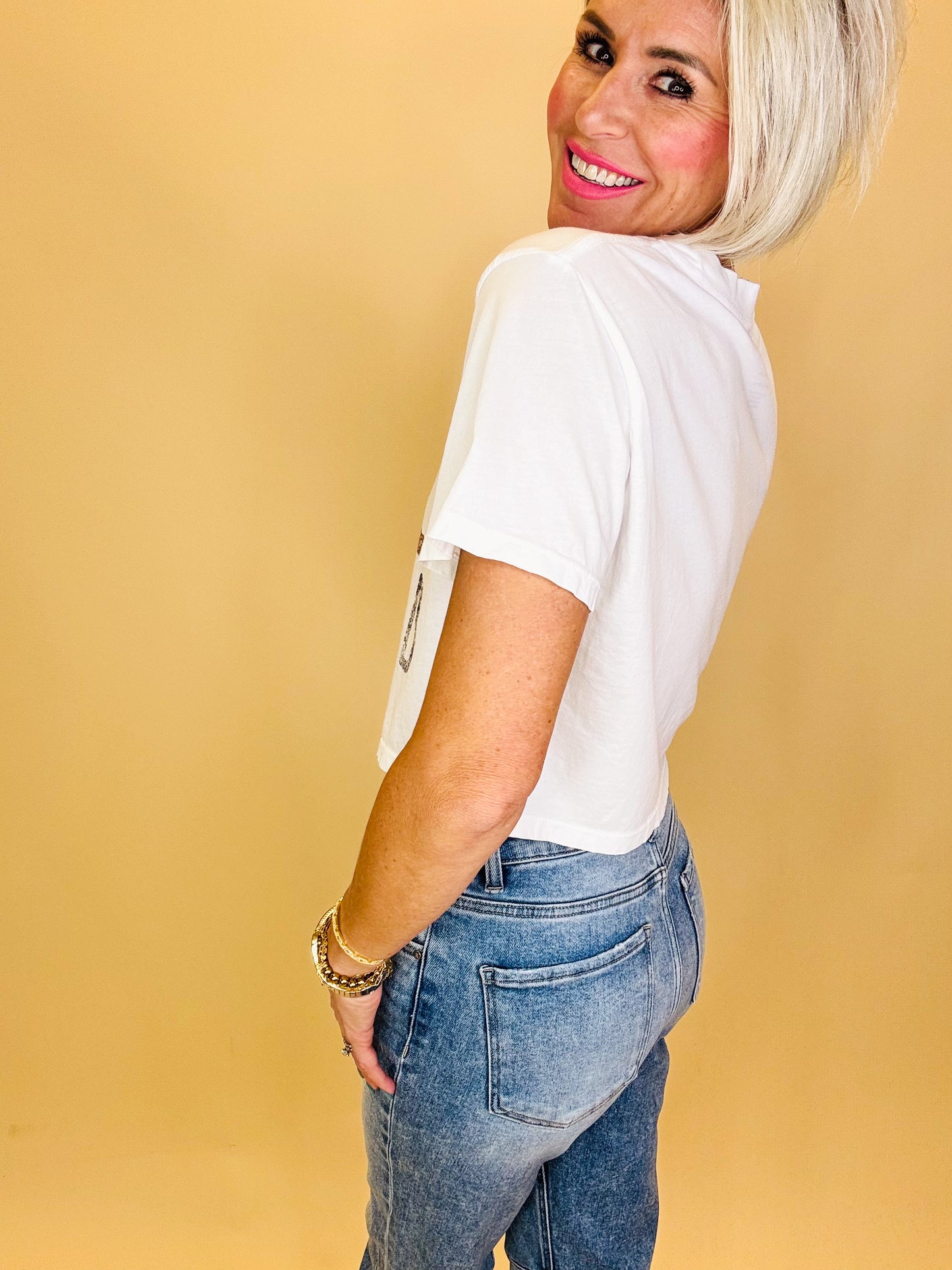 Show off your untamed side with the Wanted & Wild Crop Tee! This vintage-inspired graphic top features a bold longhorn design with a perfectly faded “Wanted and Wild” print for that effortlessly cool, worn-in look. The soft cotton fabric and cropped fit make it the ultimate match for high-rise denim, cutoffs, or a fringed jacket. Whether you’re headed to a concert, rodeo, or just living your free-spirited best life, this tee brings all the western-chic vibes with a modern twist.