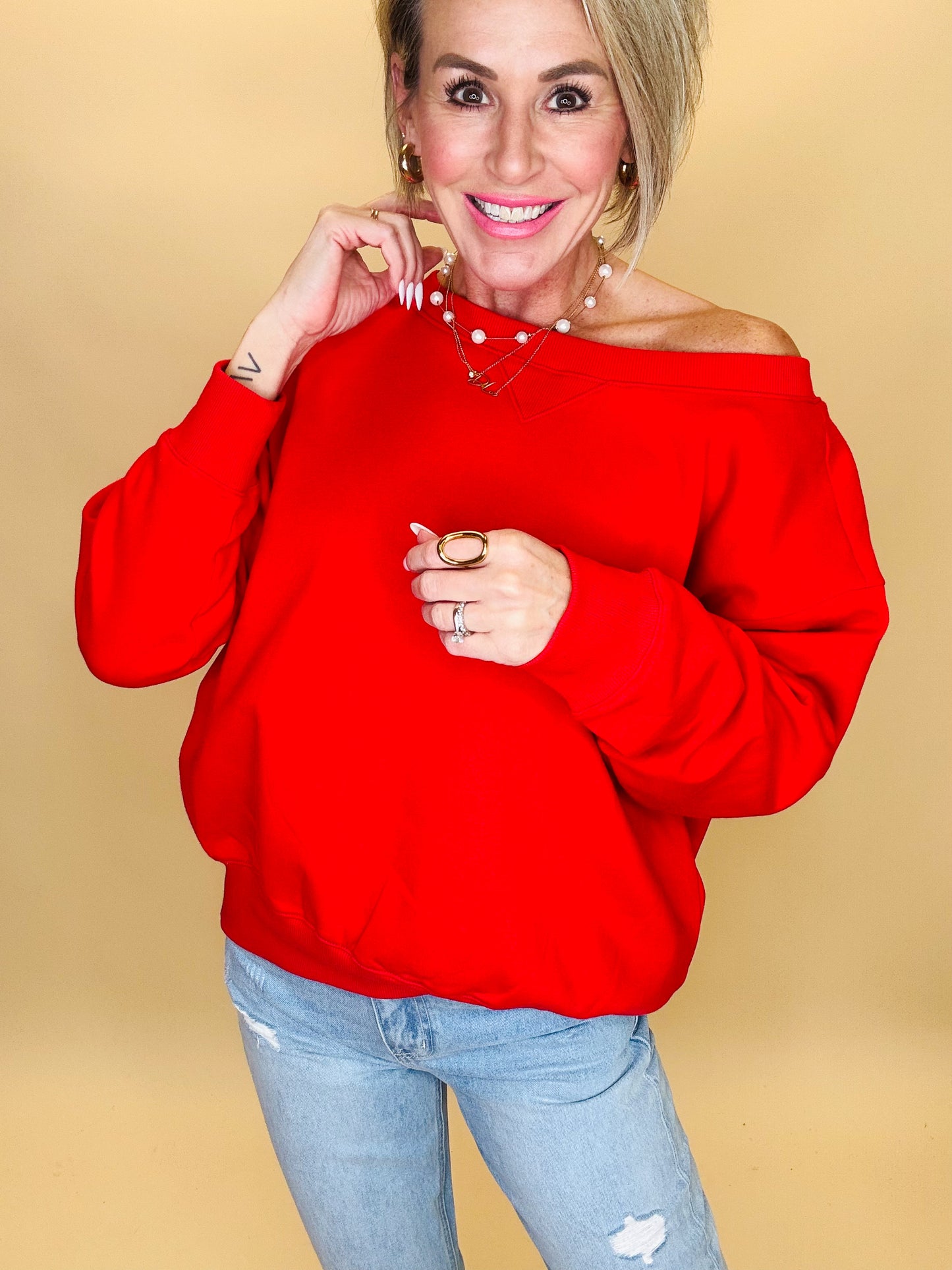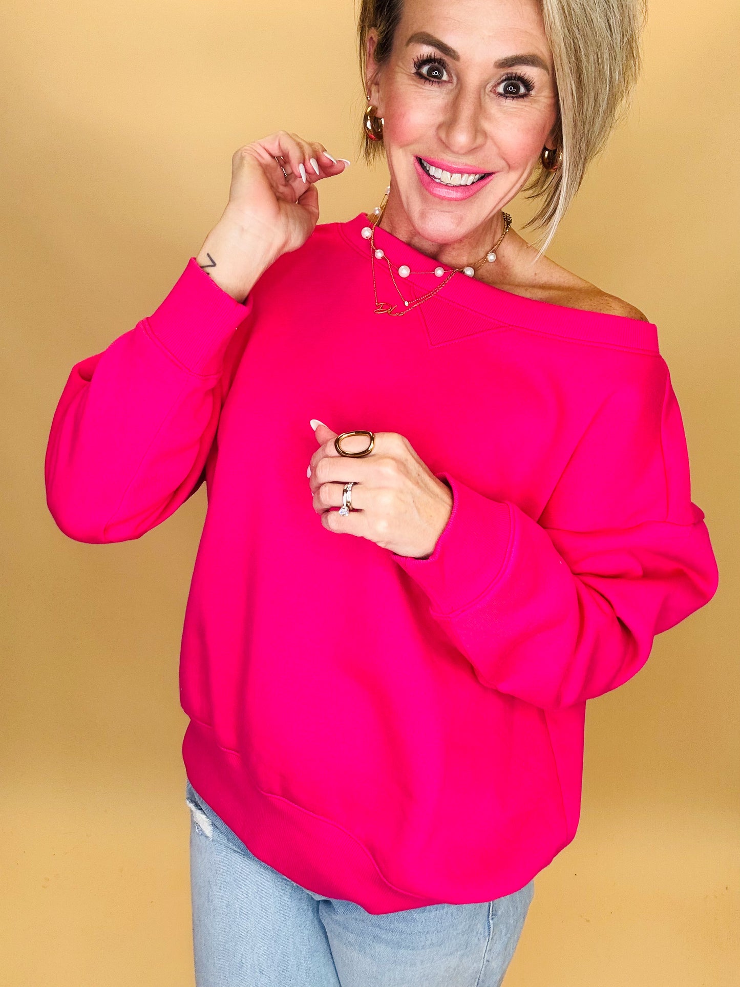 Effortlessly cool with just the right amount of slouch, the Weekend mood Sweatshirt is that grab-and-go layer you’ll live in. Designed with a relaxed, oversized fit and a flattering off-the-shoulder neckline, this sweatshirt blends cozy comfort with laid-back style. Made from a soft, smooth fleece knit with ribbed cuffs and hem, it drapes beautifully whether worn casually off one shoulder or centered for a classic look. Available in bold brights and everyday neutrals—because comfort should never be boring.